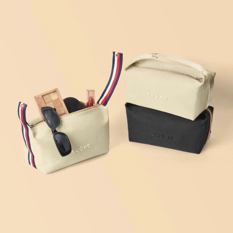 Mẫu túi mỹ phẩm tối giản nhà Vuông với những gam màu basic, có độ tương thích cao.